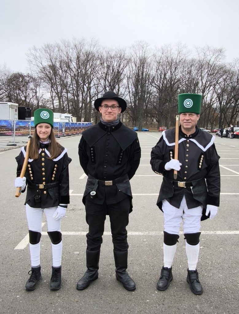 Bei unserer Trachtenschneiderin Silvia Bochman in Weißbach, konnten die Jacken und Hüte noch kurzfristig in Auftrag gegeben werden, da die Bewilligung des Landeshaushaltes erst sehr spät unterm Jahr verabschiedet wurde. Um so glücklicher sind wir, daß die Fertigstellung der Habits noch rechtzeitig zu unserer ersten Parade, am 6.12. in der Bergstadt Freiberg, fertig gestellt werden konnten.