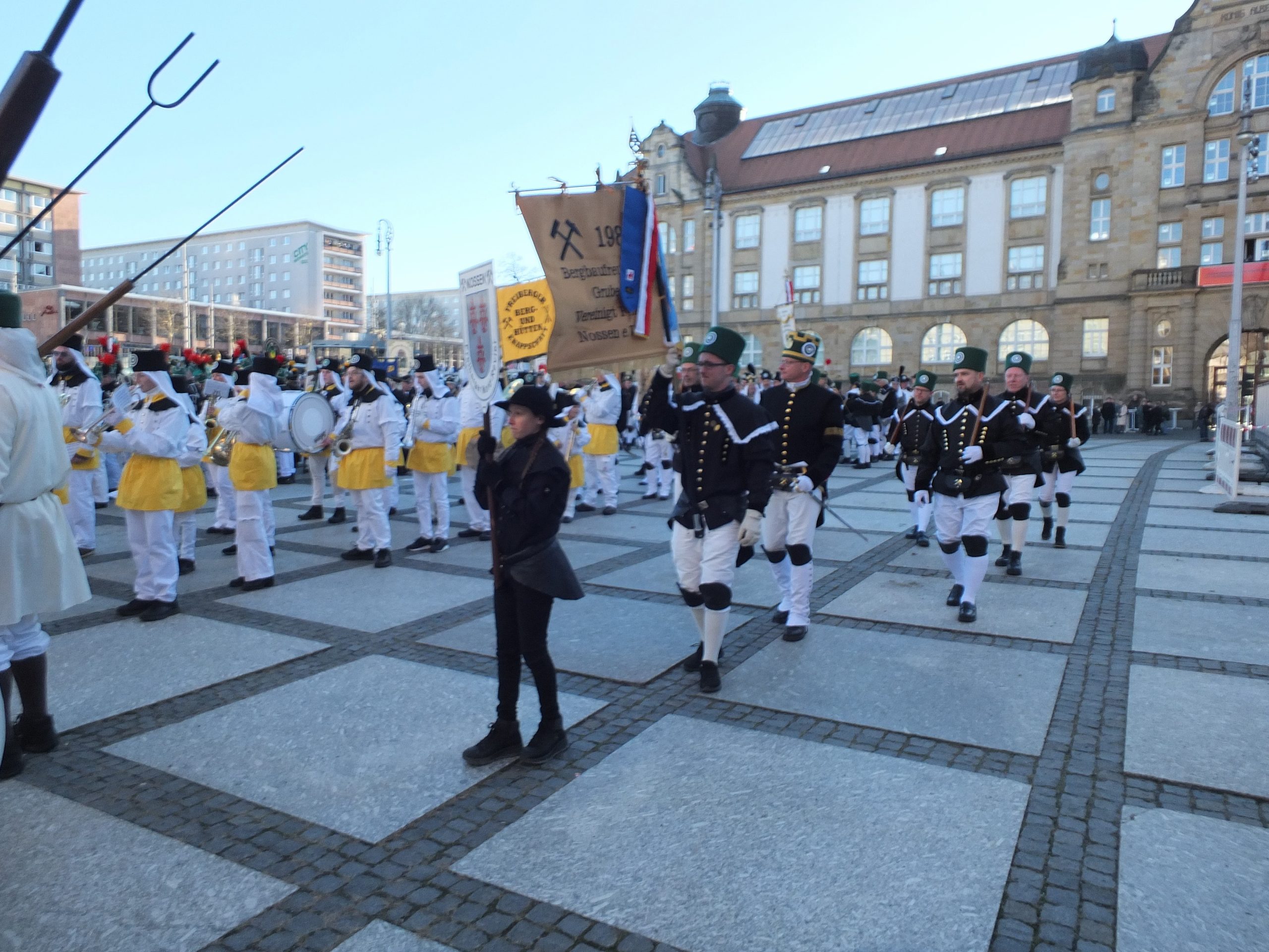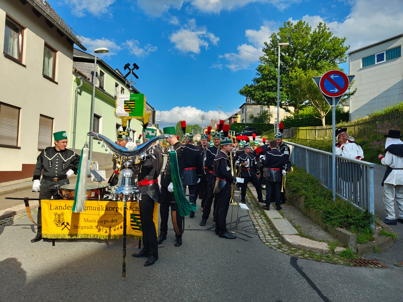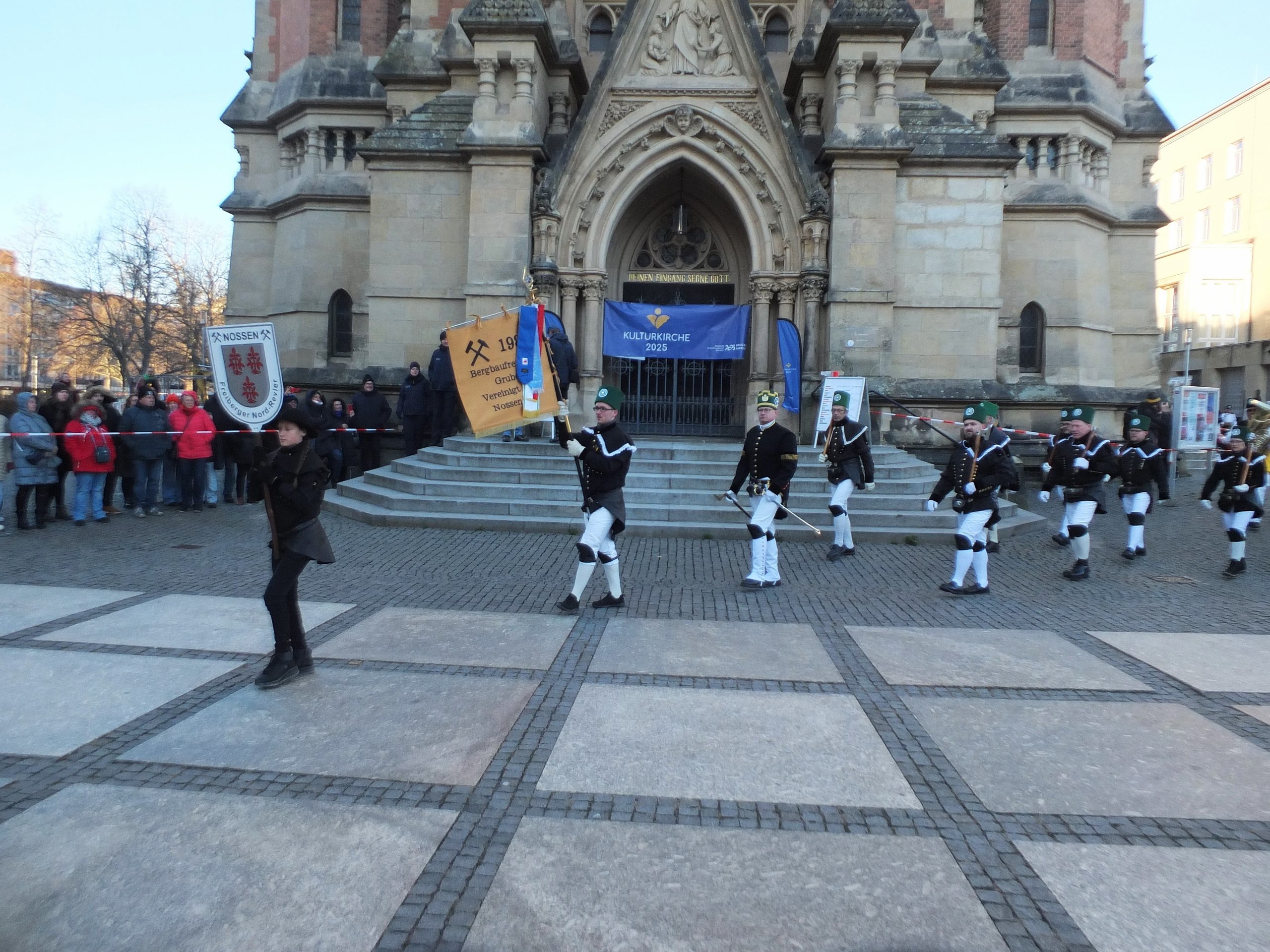 17.45 Uhr war das Stellen der Parade, so das wir 18.15 Uhr von der Oberschule zur St. Wolfgangskirche marschiert sind nach einem Berggottesdienst ging es dann auf den Schneeberger Markt wo noch ein Platzkonzert durch die Bergmusiker statt fand. Gegen 20.00 Uhr ging es nach einem halbstündigen Fußmarsch zu unseren Autos zurück. 20.30 Uhr konnten wir die Heimreise antreten, so das wir 21.30 Uhr wieder bei unseren Familien waren.