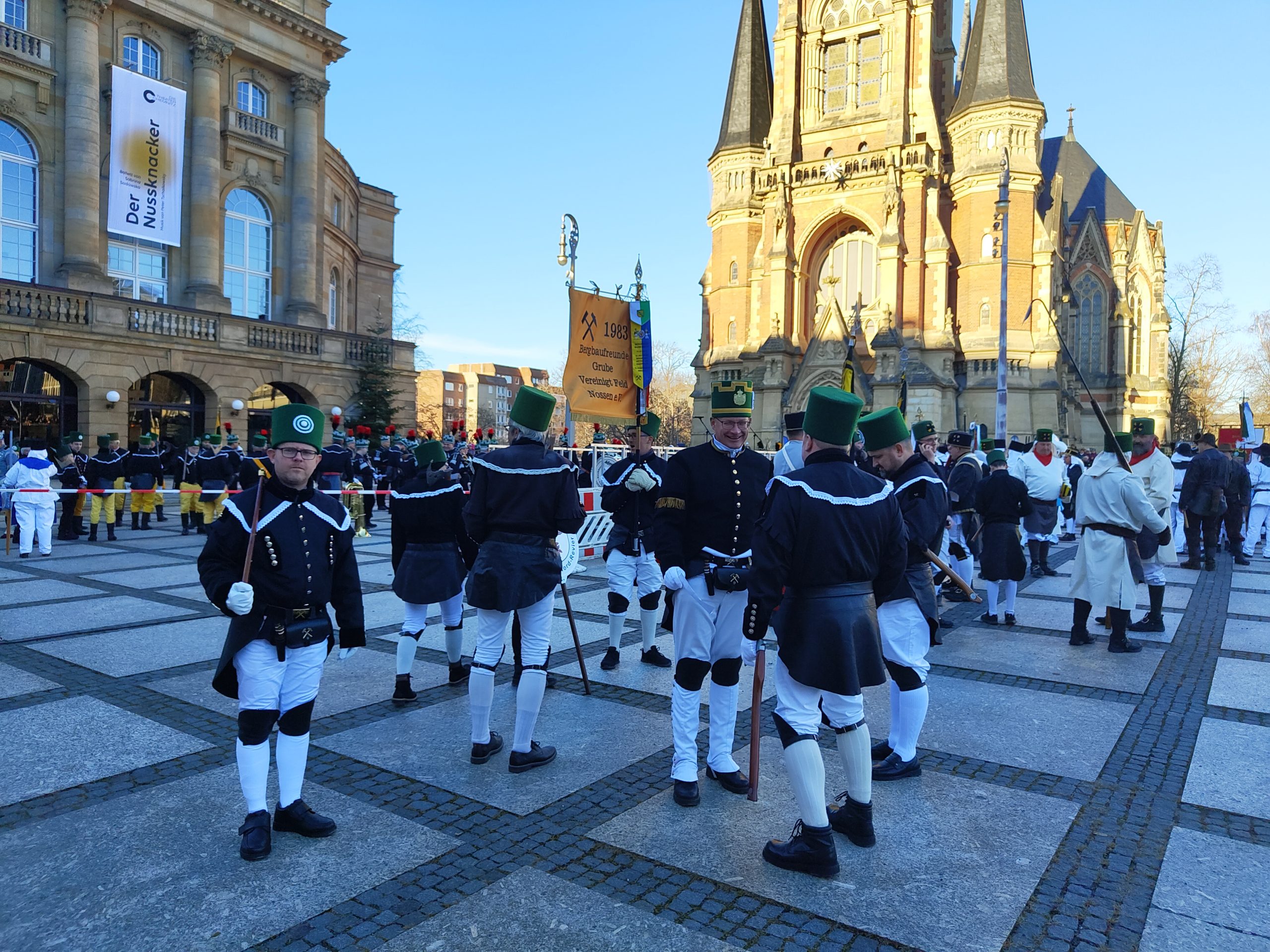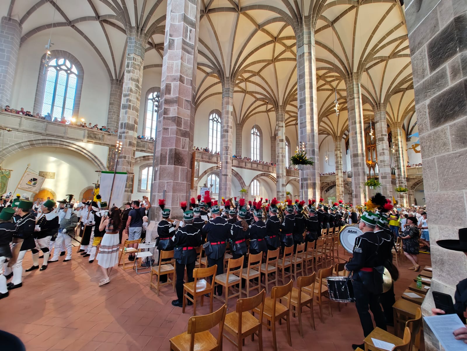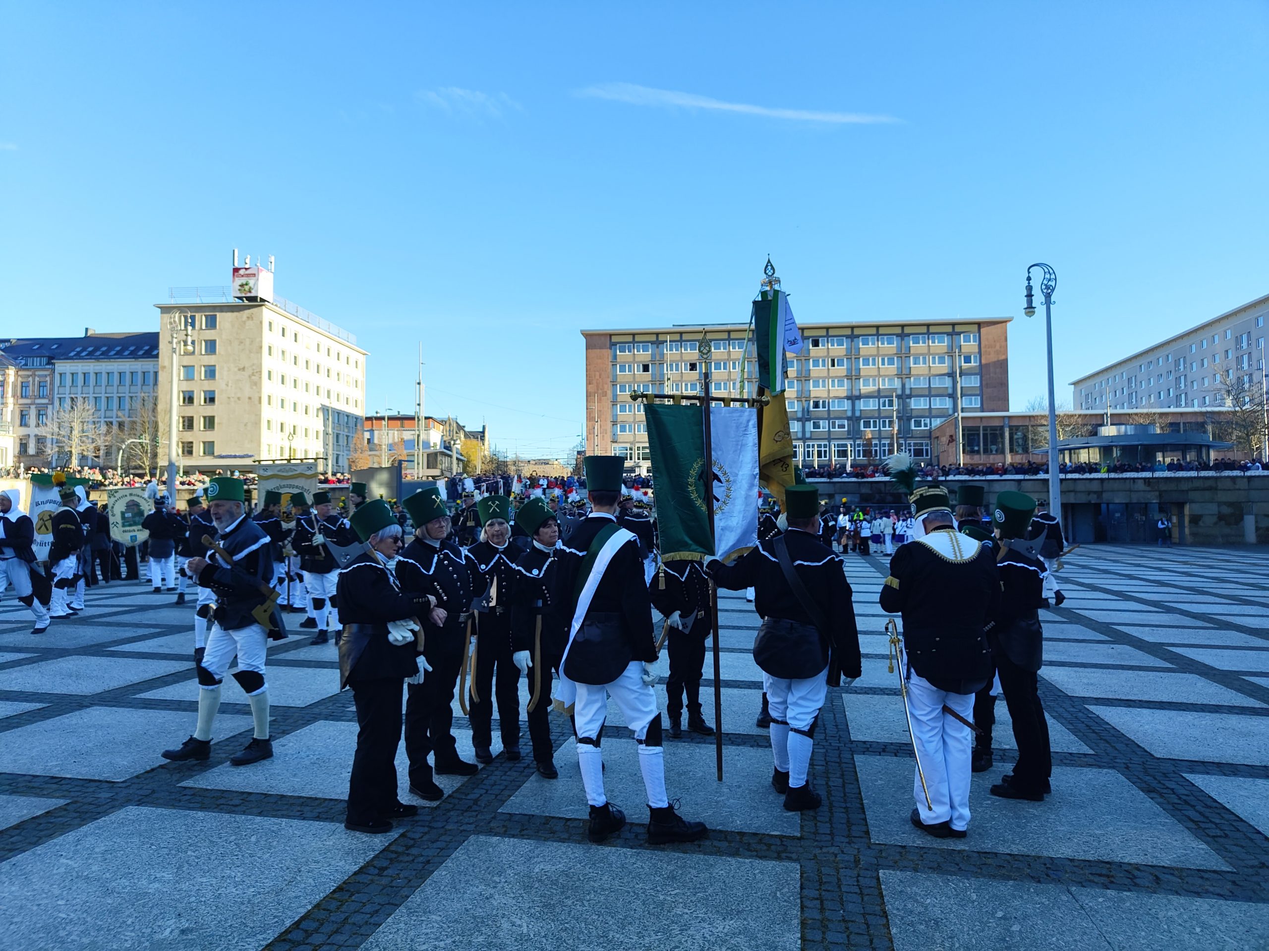 17.45 Uhr war das Stellen der Parade, so das wir 18.15 Uhr von der Oberschule zur St. Wolfgangskirche marschiert sind nach einem Berggottesdienst ging es dann auf den Schneeberger Markt wo noch ein Platzkonzert durch die Bergmusiker statt fand. Gegen 20.00 Uhr ging es nach einem halbstündigen Fußmarsch zu unseren Autos zurück. 20.30 Uhr konnten wir die Heimreise antreten, so das wir 21.30 Uhr wieder bei unseren Familien waren.