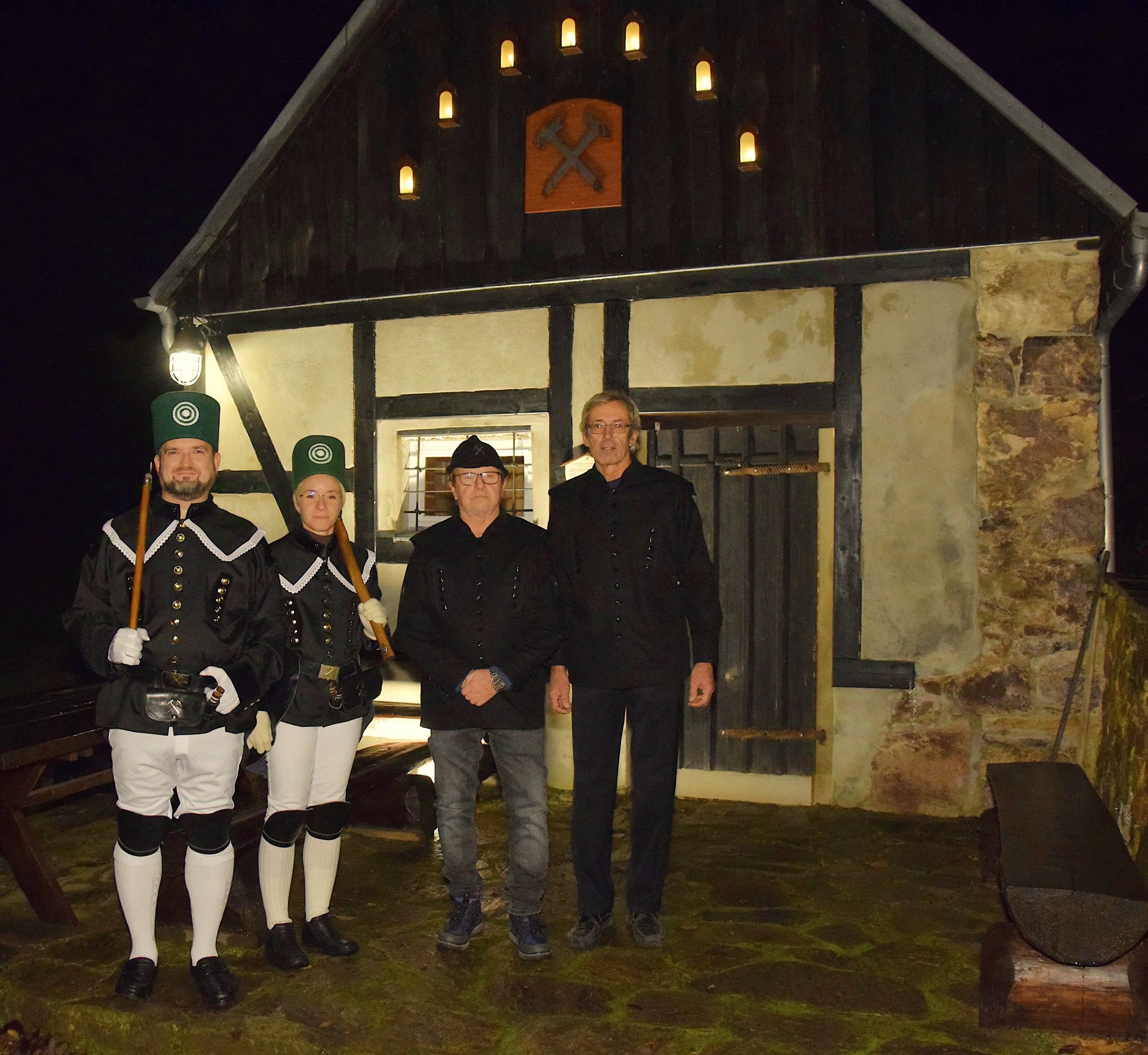 Unser Verein , die Bergbaufreunde „Grube Vereinigt Feld“ Nossen e.V. sind seit 2007 Mitglied im sächsischen Landesverband der Bergmanns-, Hütten- und Knappenvereine e.V. Bei zahlreichen Veranstaltungen des Landesverbandes repräsentieren wir die bergbauliche Vergangeneit unserer Stadt Nossen, in Tracht. Dem sogenannten Berghabit. Durch zahlreiche Auftritte in den letzten Jahren, bei Heimat-& Schulfesten, Stadtfesten, Bergparaden und vielen weiteren Veranstaltungen, sind die Habits der langjährigen Vereinsmitglieder sehr in Mitleidenschaft gezogen worden. Über eine Zuwendung des Landkreises Meißen zu Förderung des bürgerlichen Engagements (FRL Ehrenamt), konnten wir dieses Jahr wieder vier Bergbaufreunde mit neuen Jacken und Schachthüten ausstatten. Die Maßnahme wird mitfinanziert mit Steuermitteln auf Grundlage des von den Abgeordneten des Sächsischen Landtags beschlossenen Haushalt. Bei der Trachtenschneiderin Silvia Bochmann in Weißbach wurden die neuen Jacken und Hüte in Auftrag gegeben und konnten zum Tag der offenen Tür auf unserer Bergbauschauanlage , sowie zu Bergparaden im Erzgebirge zum ersten Mal öffentlich gezeigt werden.